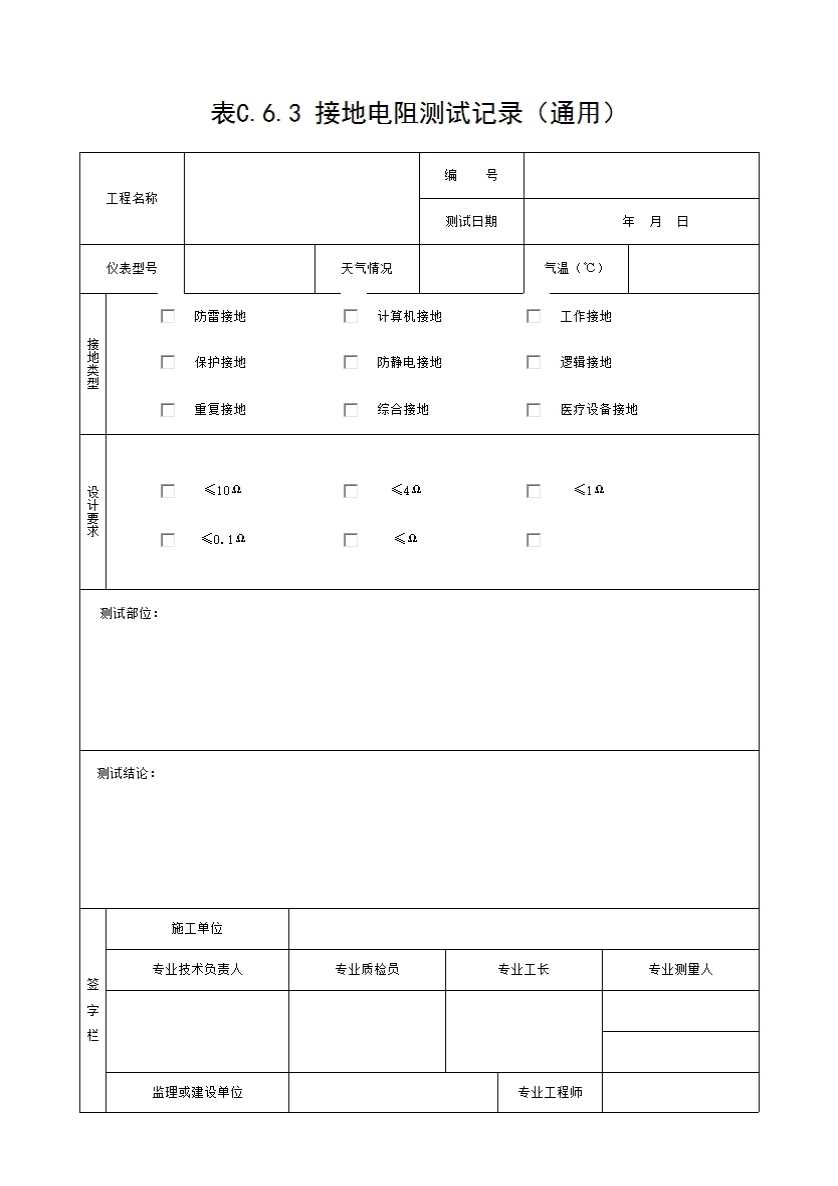 表格名称:表C.6.3 接地电阻测试记录(通用)