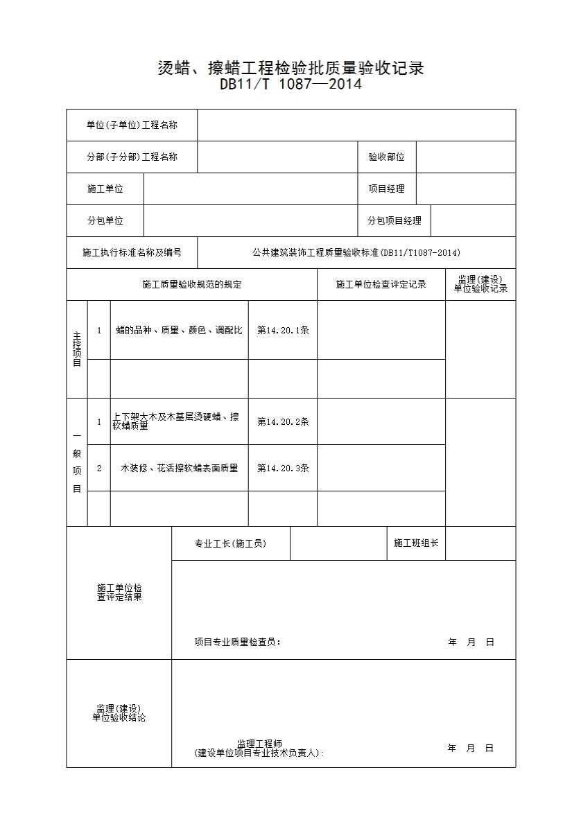 表格名称:烫蜡、擦蜡工程检验批质量验收记录