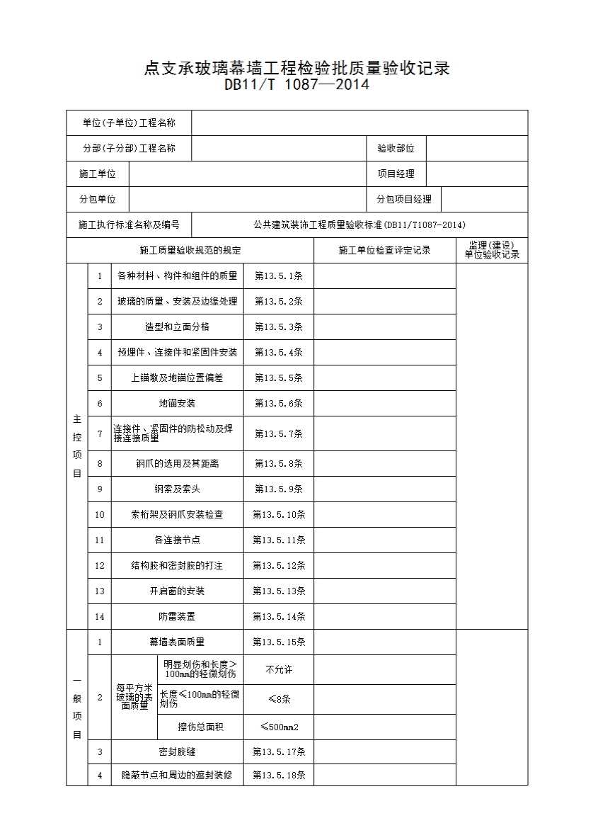 表格名称:点支承玻璃幕墙工程检验批质量验收记录