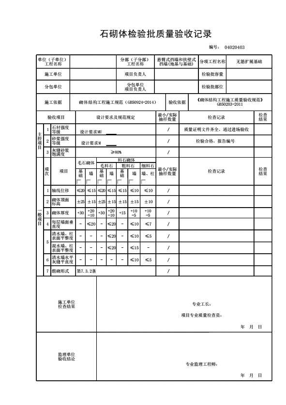 石砌体检验批质量验收记录