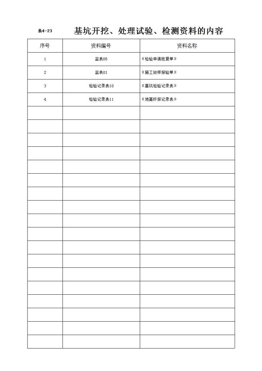 表格名称:表4-23 基坑开挖、处理试验、检测资料的内容