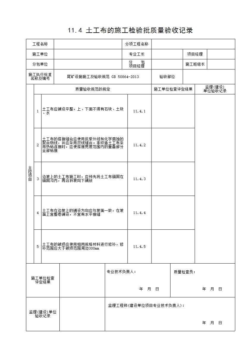 表格名称:11.4 土工布的施工检验批质量验收记录