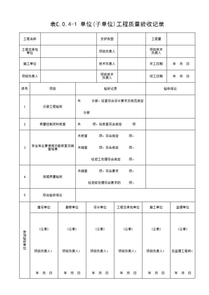 表格名称:表E.0.4-1 单位(子单位)工程质量验收记录