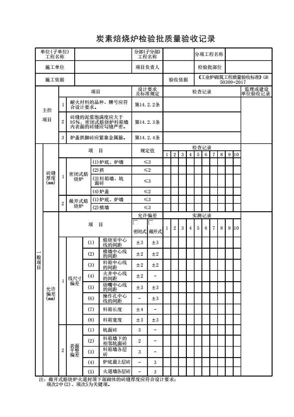 GB 50309-2017 工业炉砌筑工程质里验收标准