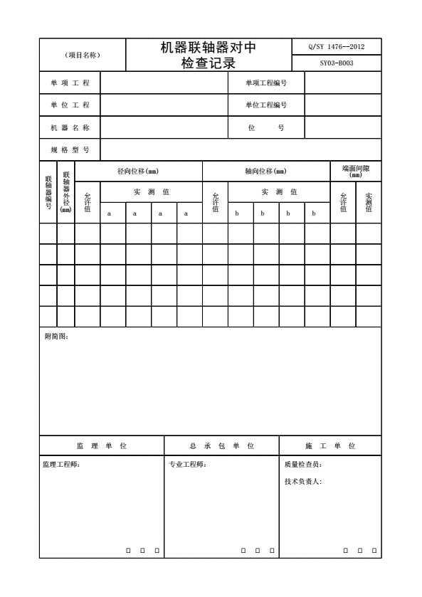 表格名称:SY03-B003 机器联轴器对中检查记录