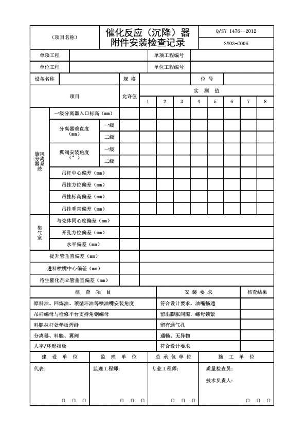 表格名称:SY03-C006 催化反应(沉降)器附件安装检查记录