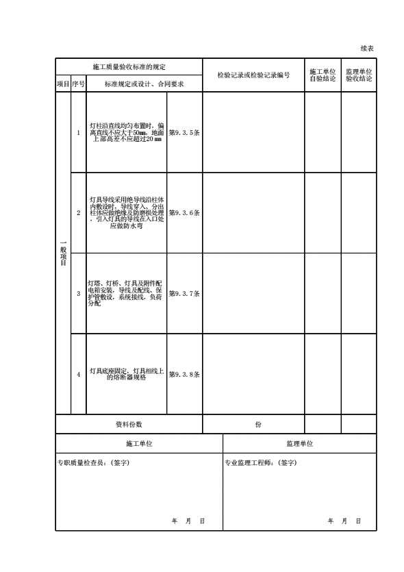 表格名称:09030502 室外照明检验批质量验收记录