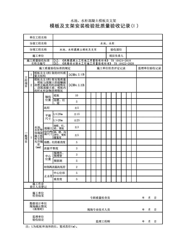 【水池、水柜混凝土模板及支架】模板及支架安装检验批质量验收记录(Ⅰ)
