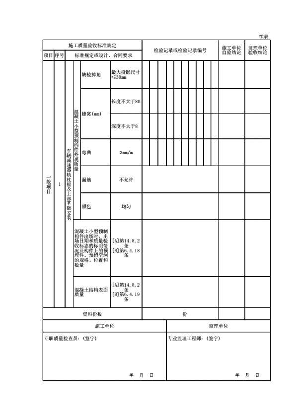 表格名称:08090607 【车辆减速器】车辆减速器轨枕板及上部基础安装检验批质量验收记录表(Ⅱ)