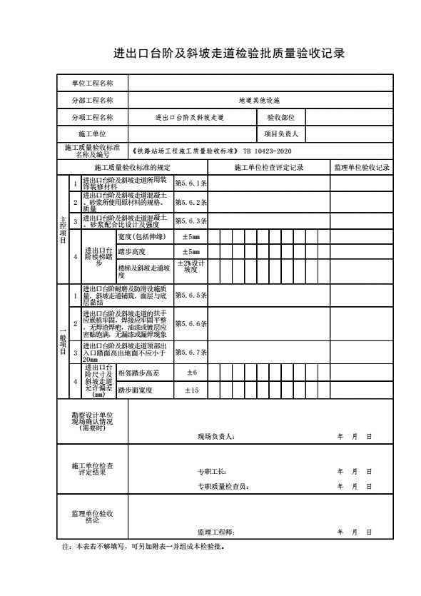 表格名称:进出口台阶及斜坡走道检验批质量验收记录