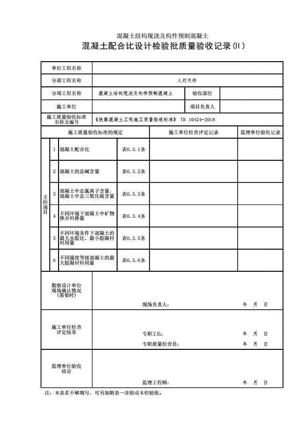 表格名称:【混凝土结构现浇及构件预制混凝土】混凝土配合比设计检验批质量验收记录(Ⅱ)