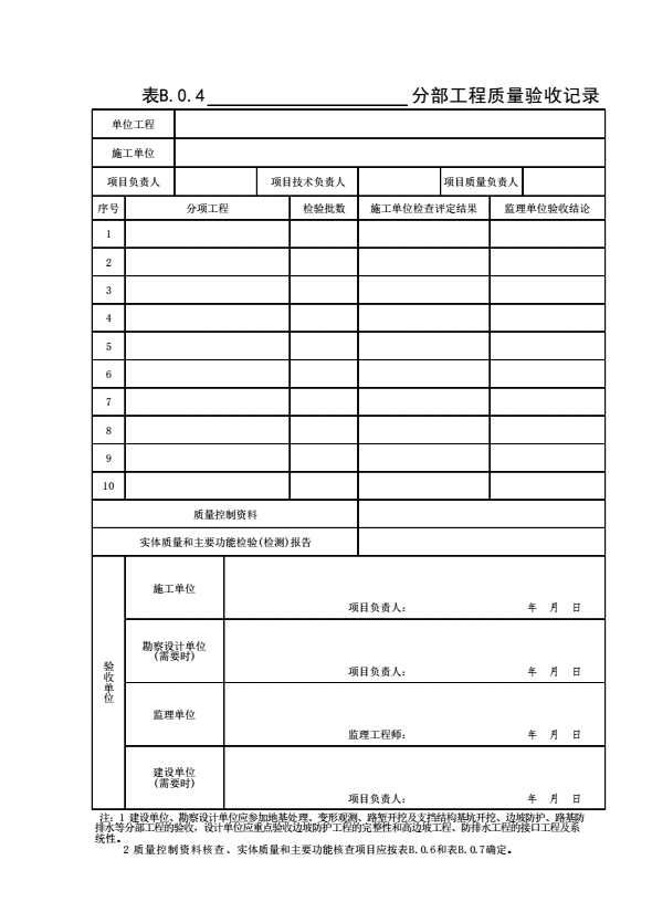 表B.0.4 ______分部工程质量验收记录