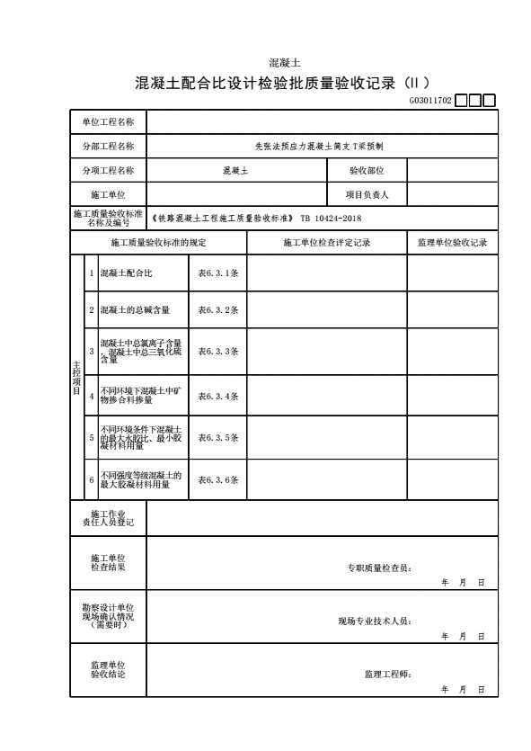 表格名称:G03011702 【混凝土】混凝土配合比设计检验批质量验收记录(Ⅱ)