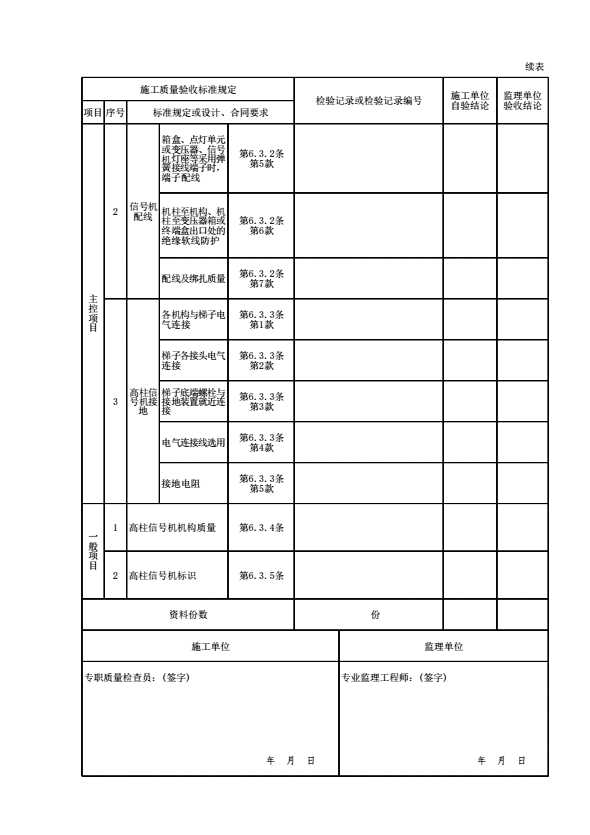 表格名称:G08020302 高柱信号机检验批质量验收记录表