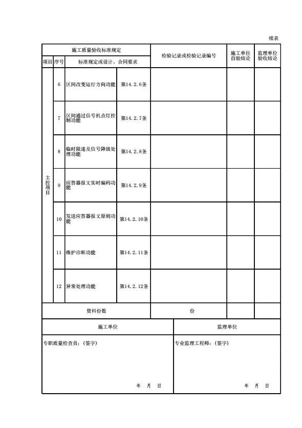 表格名称:G08020801 列控中心(TCC)功能检验检验批质量验收记录表