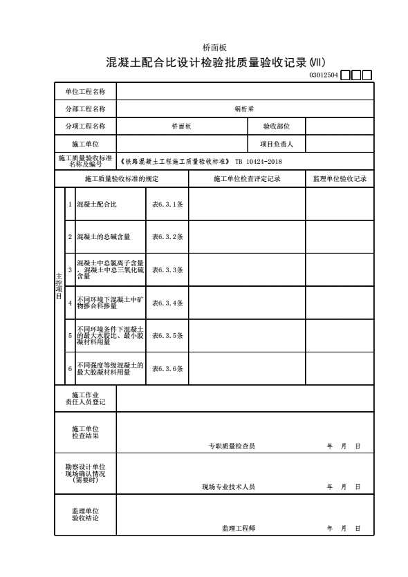 表格名称:03012504 混凝土配合比设计检验批质量验收记录(Ⅶ)