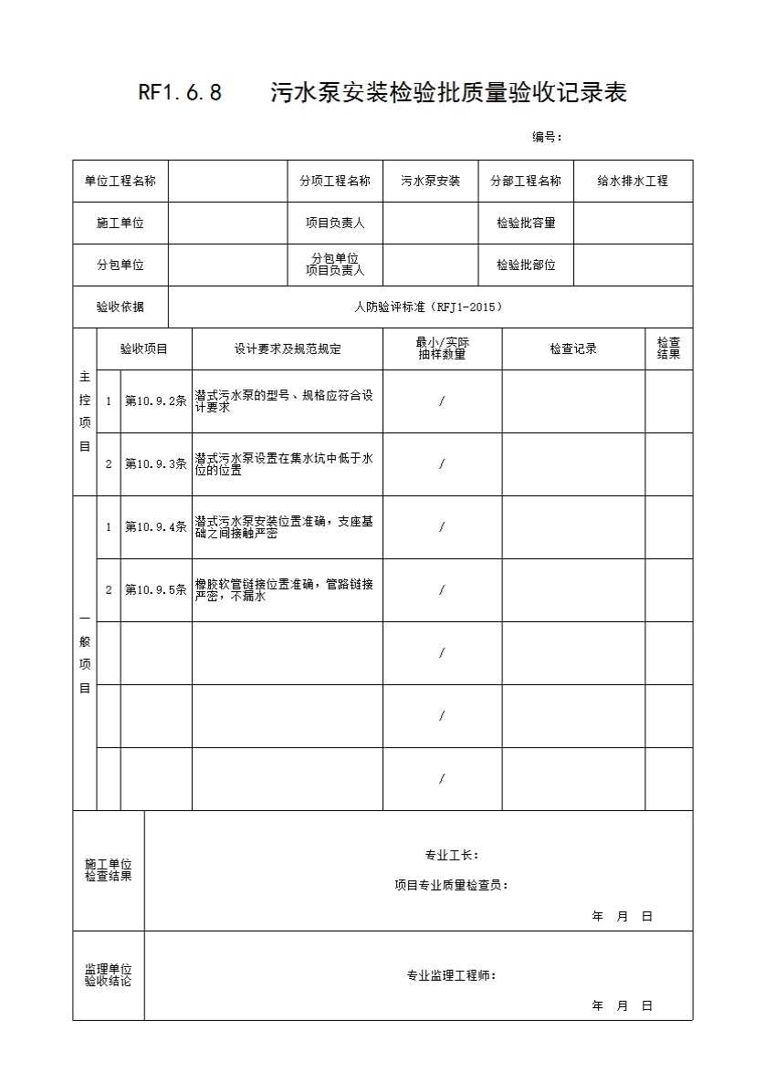 表格名称:1.6.8 污水泵安装