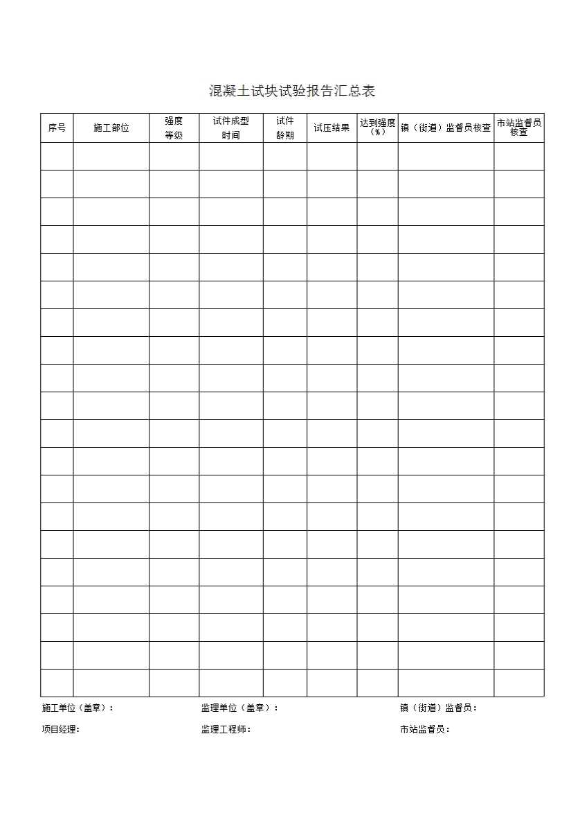 表格名称:zj023混凝土试块试验报告汇总表