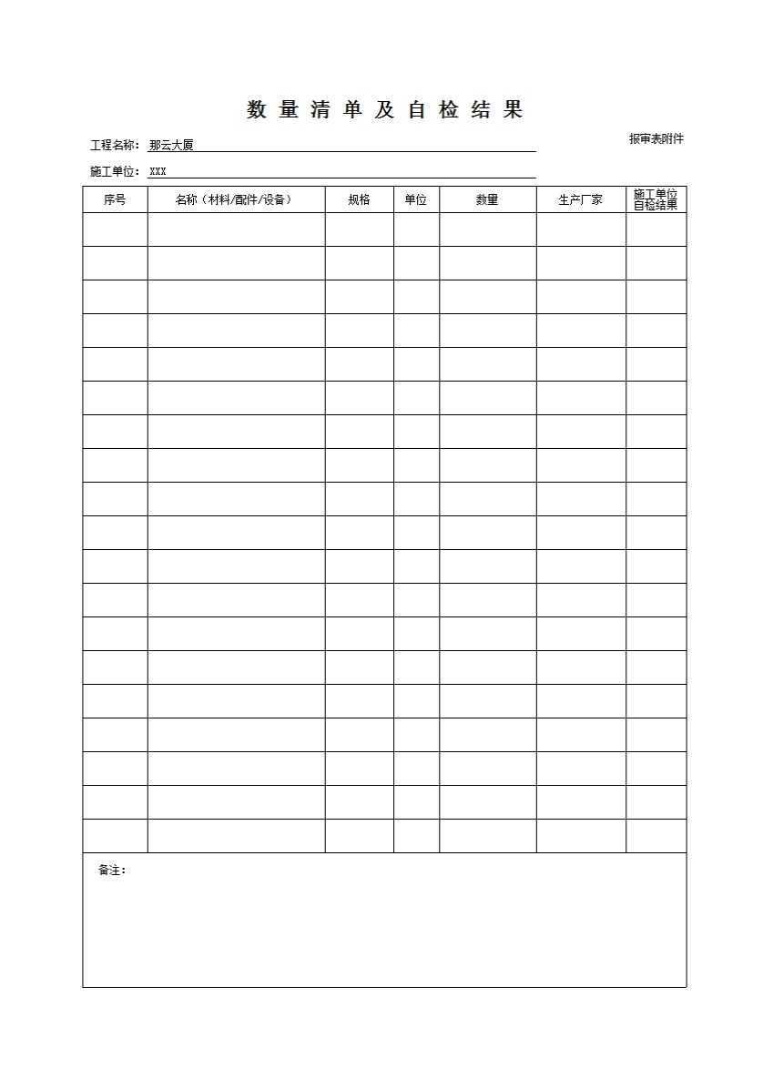 A9工程材料构配件设备报审表