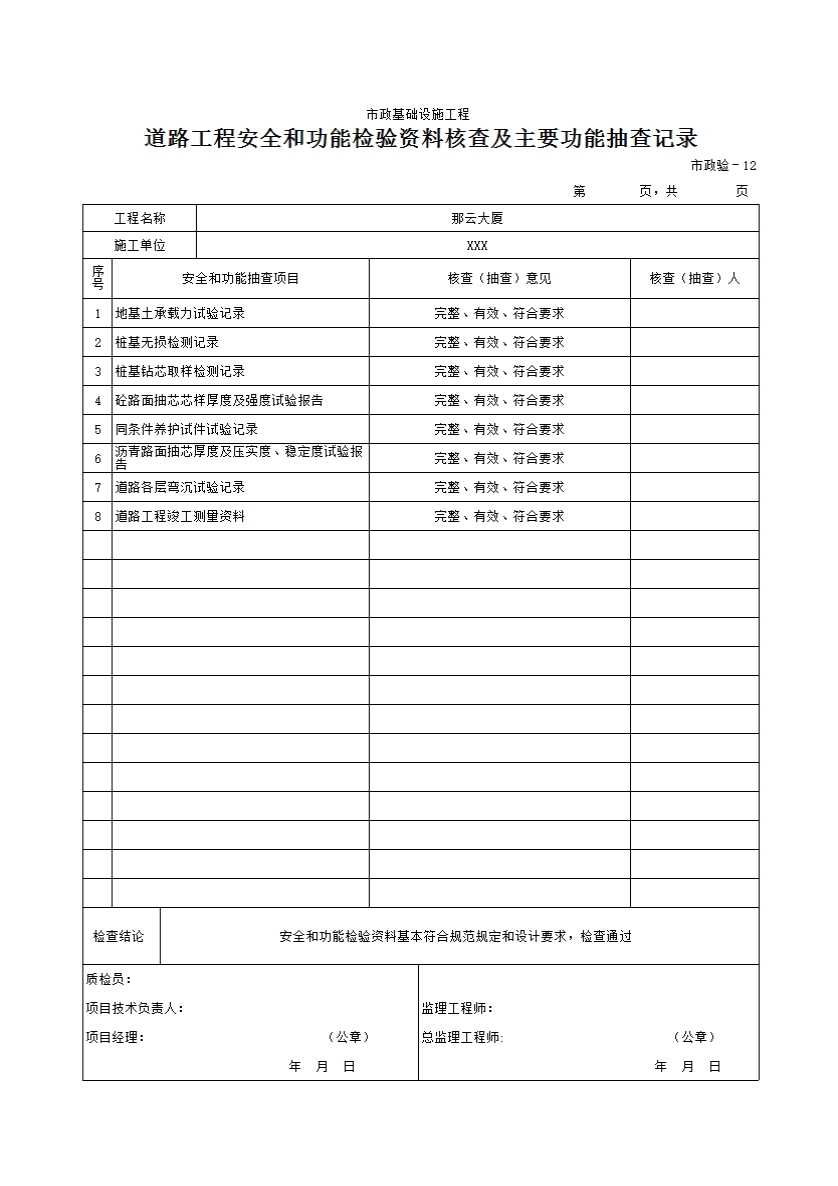 市政验—12道路工程安全和功能检验资料核查及主要功能抽查记录