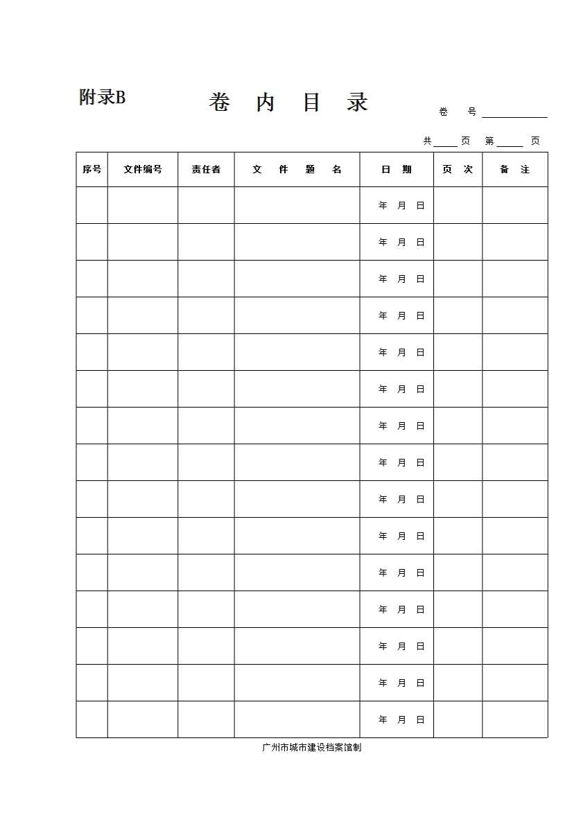 表格名称:附录B卷内目录样式(空白目录)