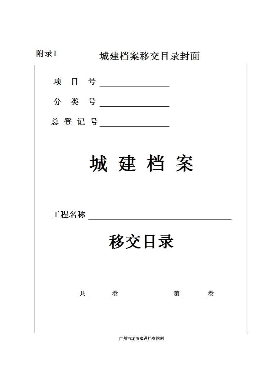 附录I城建档案移交目录封面样式