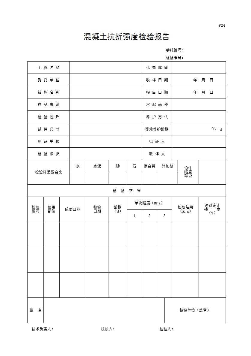 表格名称:F24 混凝土抗折强度检验报告