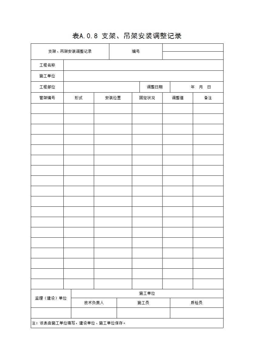 表格名称:表A.0.8 支架、吊架安装调整记录