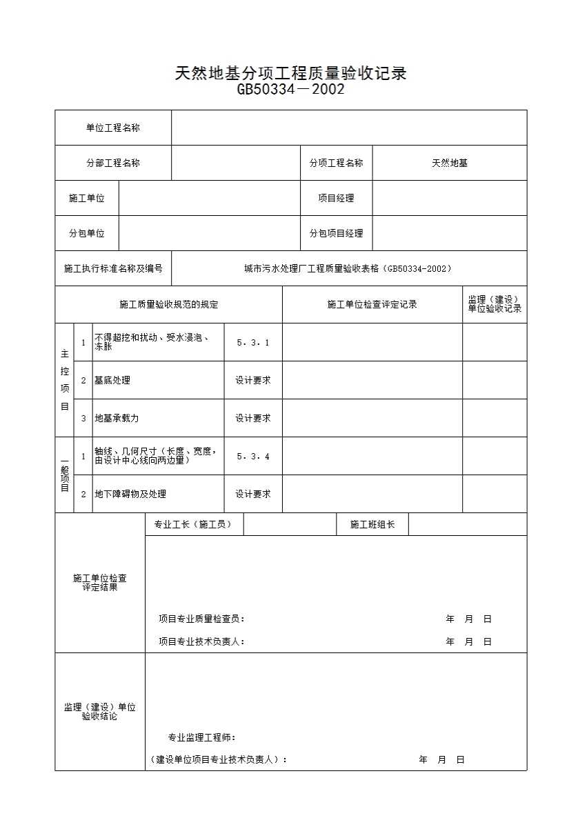 表格名称:39 天然地基分项工程质量验收记录