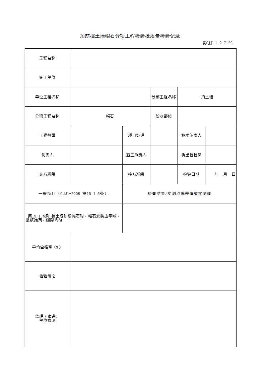 表CJJ 1-2-7-29 加筋挡土墙帽石分项工程检验批质量检验记录