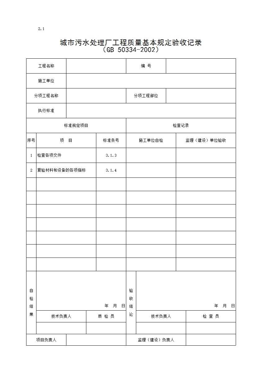 2.1 城市污水处理厂工程质量基本规定验收记录