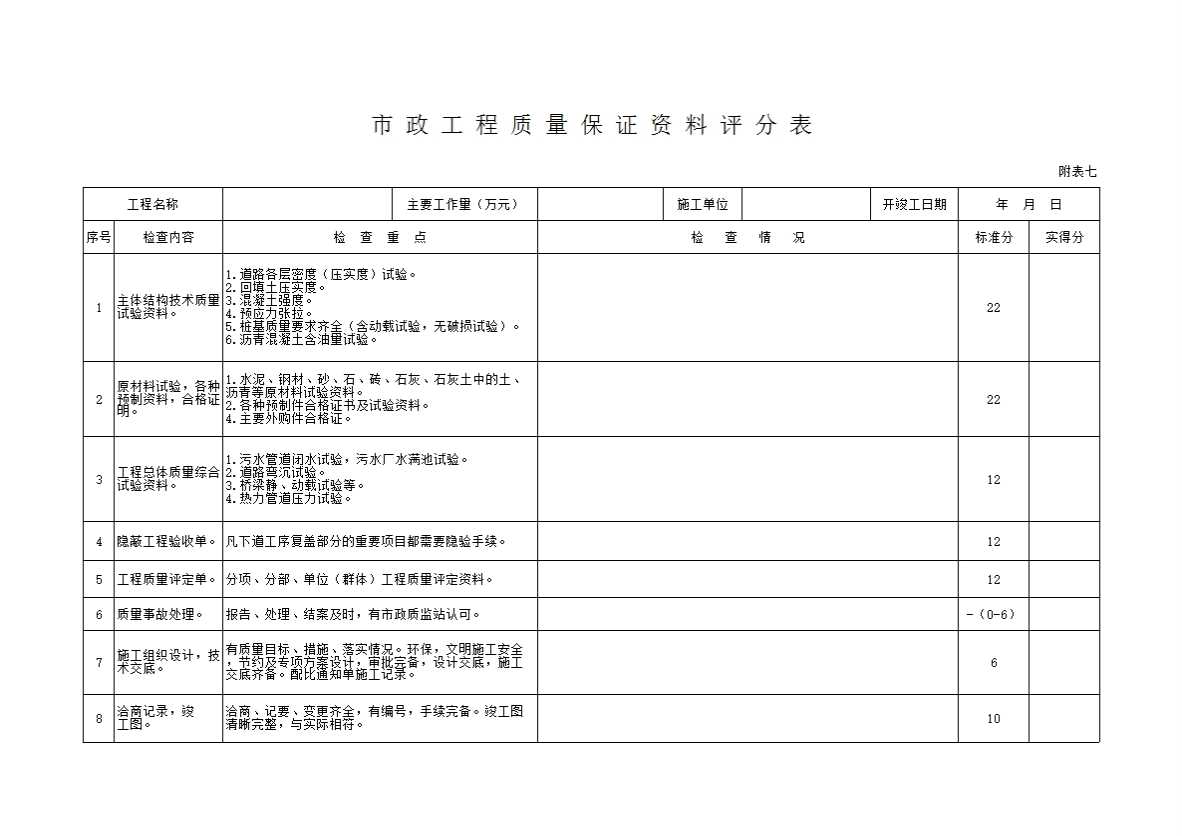 8 市政工程质量保证评分表附表七