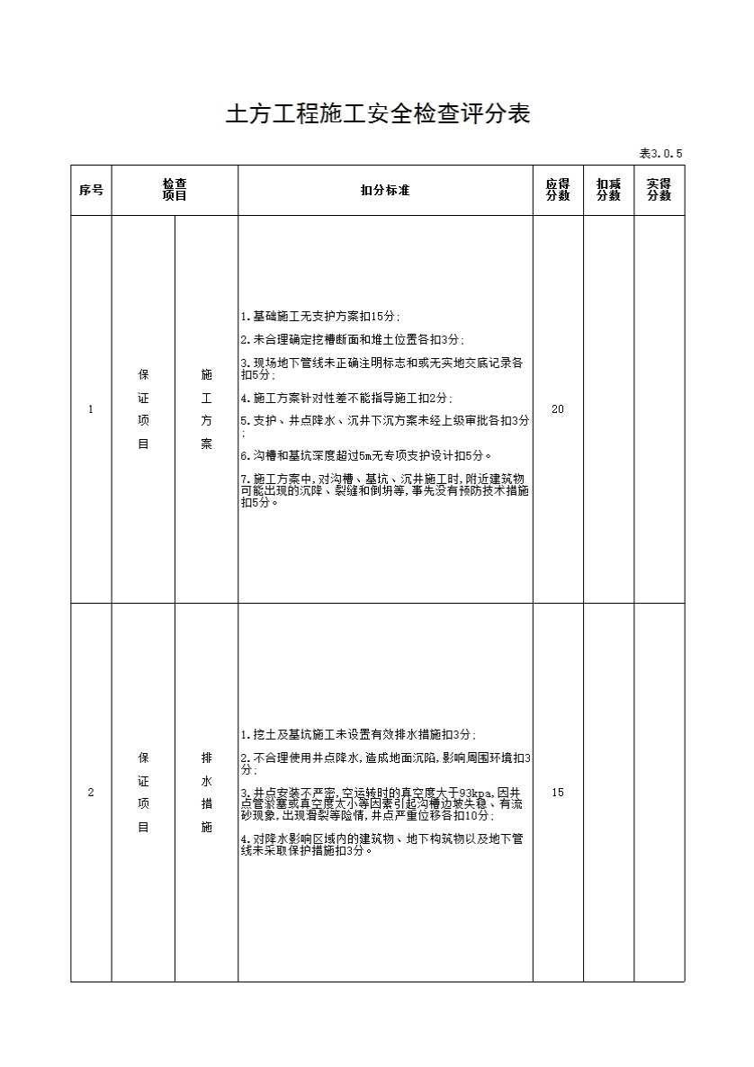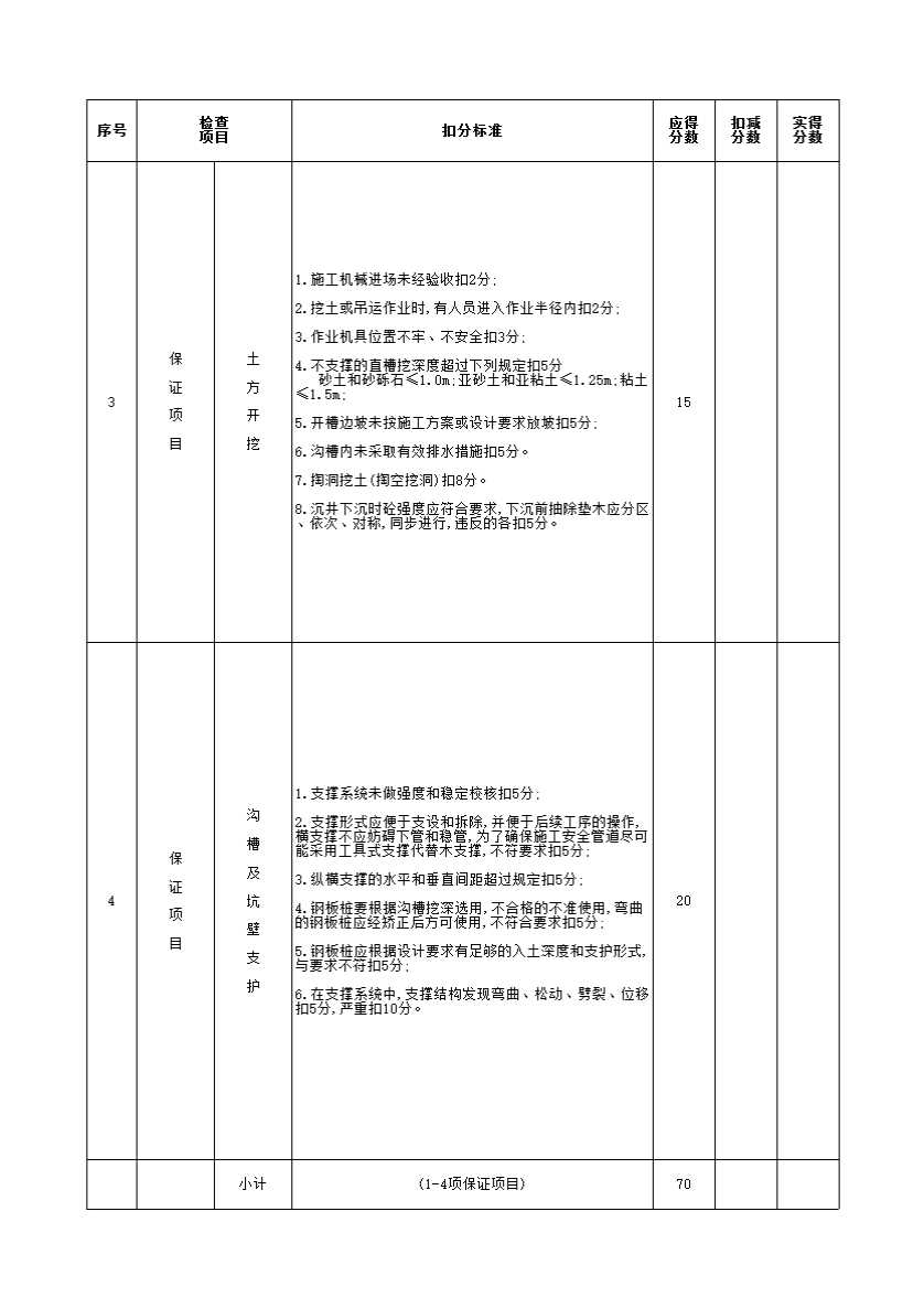 土方工程施工安全检查评分表