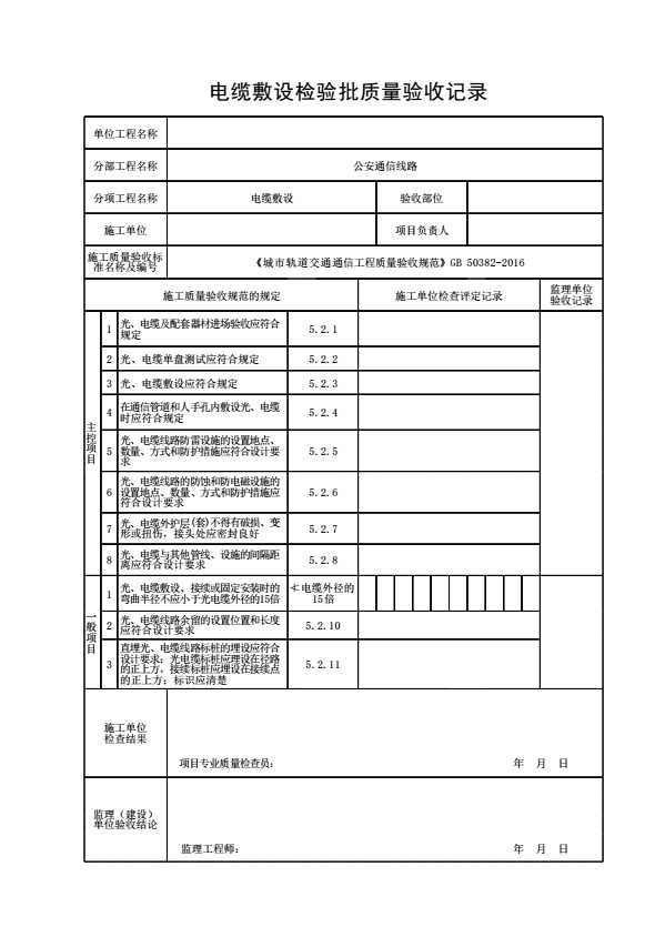 电缆敷设检验批质量验收记录