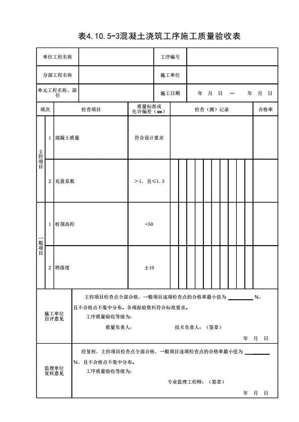 表格名称:表4.10.5-3 混凝土浇筑工序施工质量验收表