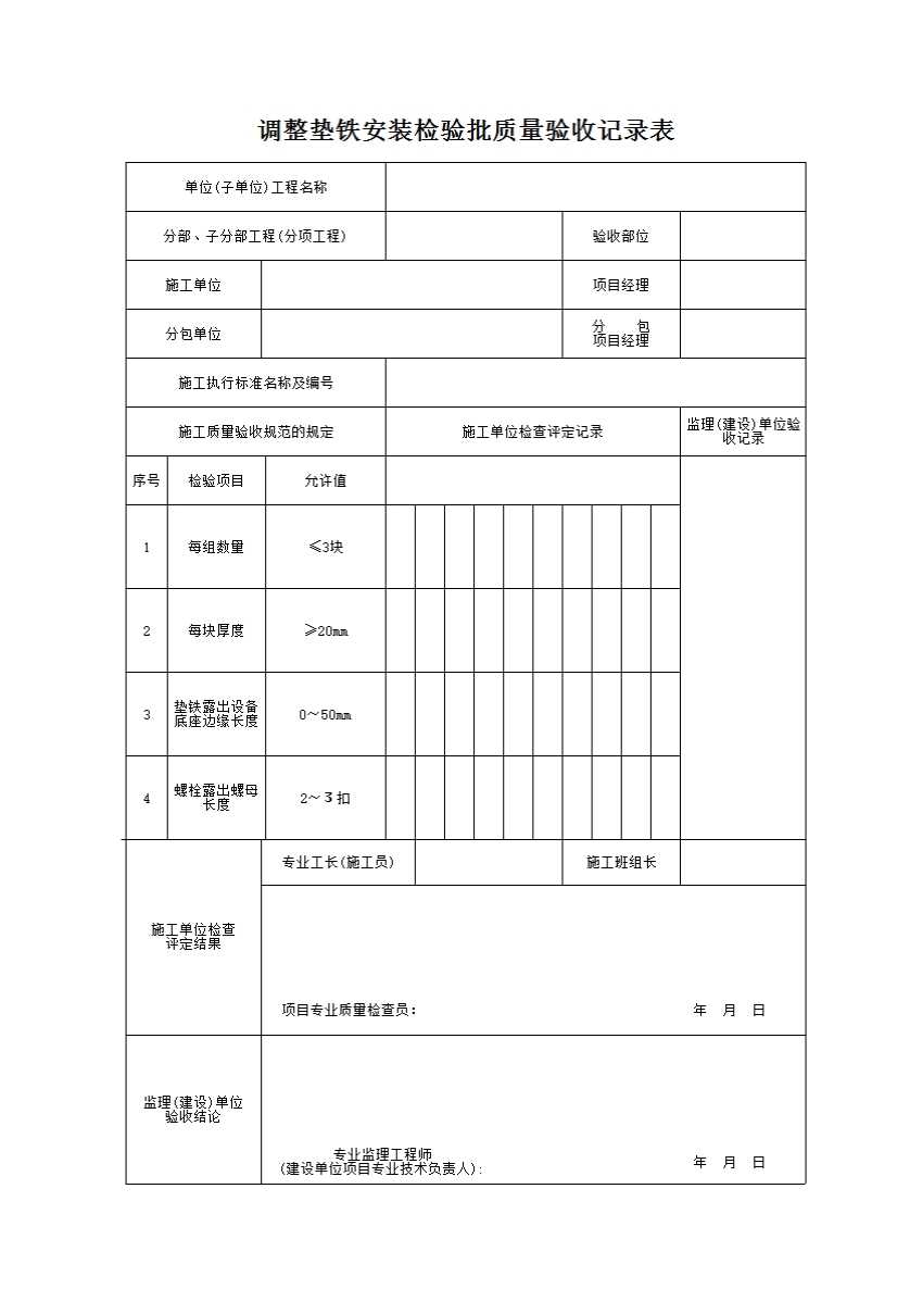 4.1.3 调整垫铁安装的检验项目、 要求和方法应符合表4.13 的规定。