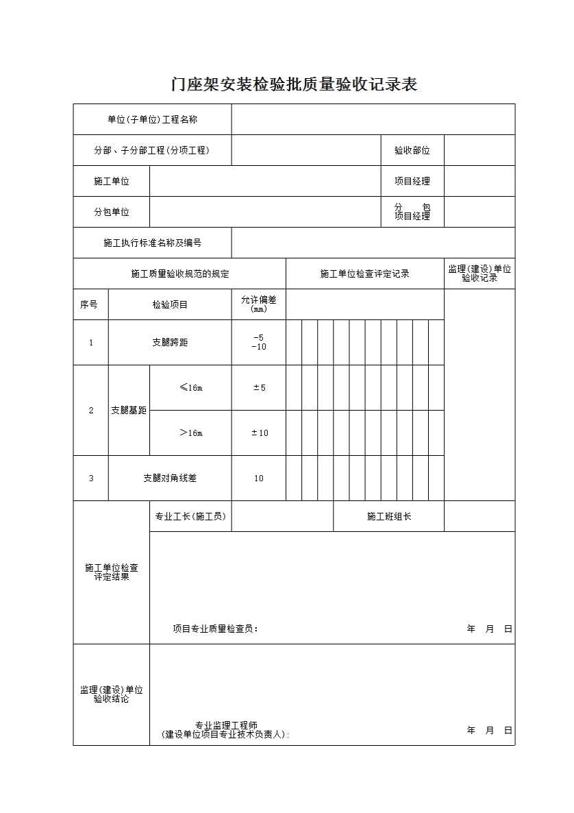 5.2.8 门座抓斗卸船机门座架安装的检验项目、 要求和方法应符合表5.2.8的规定。