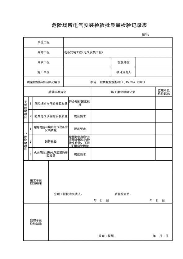 表格名称:危险场所电气安装检验批质量检验记录表