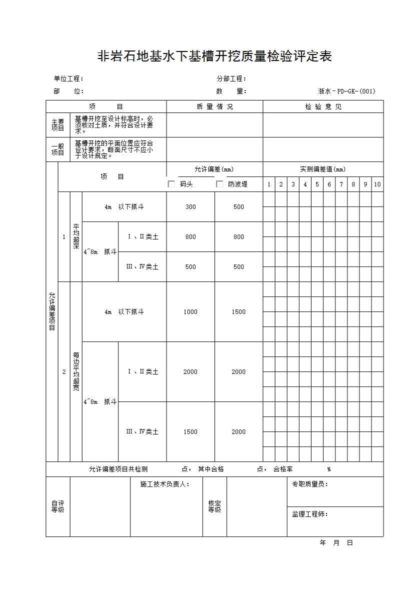 表格名称:001 非岩石地基水下基槽开挖质量检验评定表