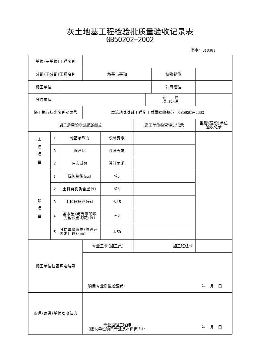 表格名称:011 灰土地基工程检验批质量验收记录表