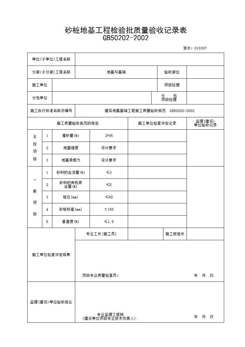 表格名称:017 砂桩地基工程检验批质量验收记录表