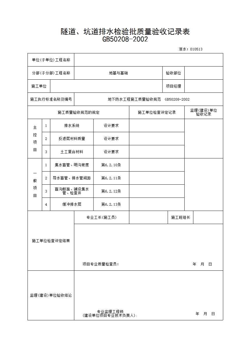 表格名称:045 隧道、坑道排水检验批质量验收记录表