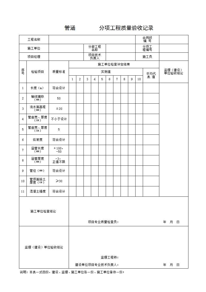 表格名称:管涵分项工程质量检验评定表11