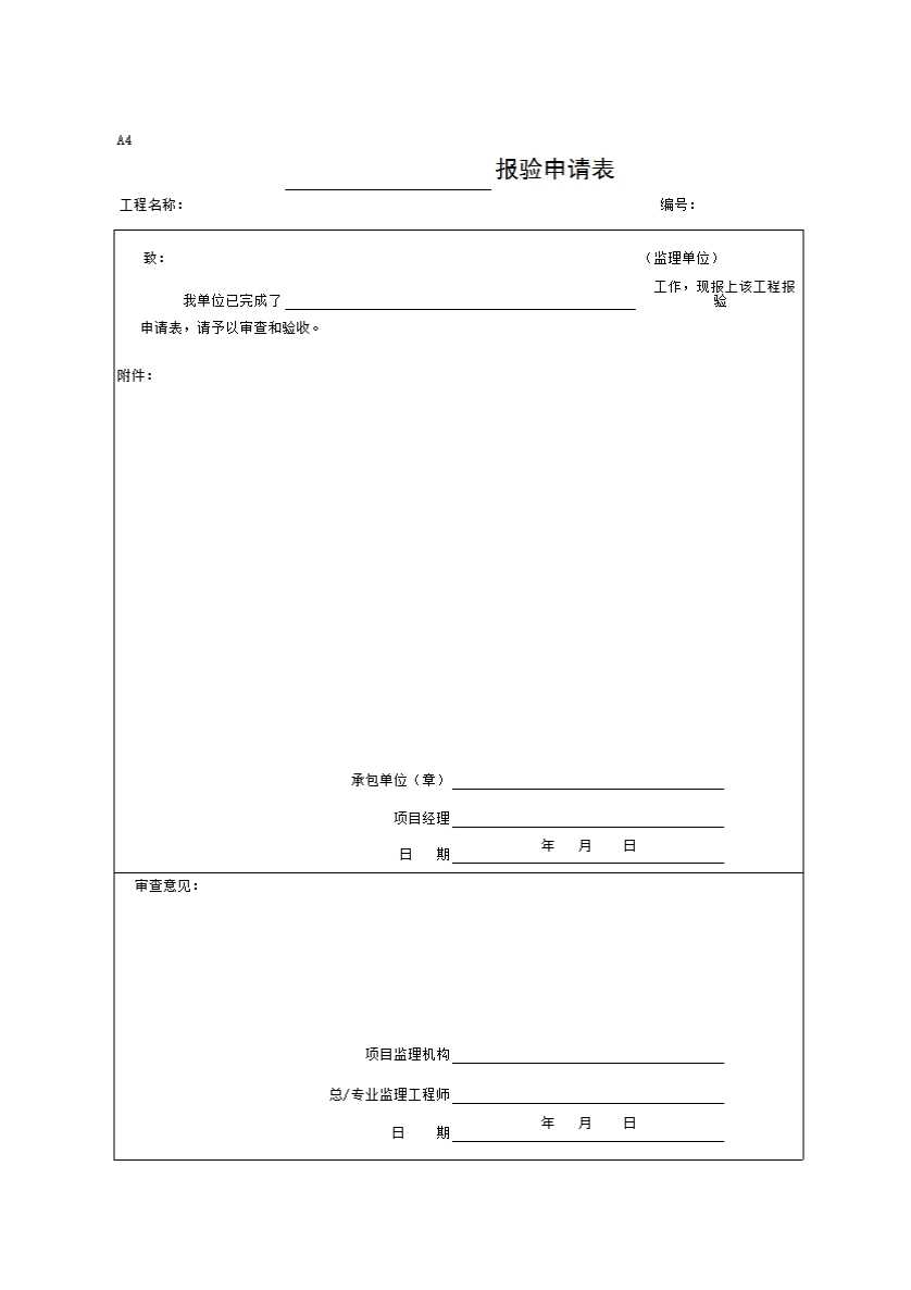 表格名称:A4______报验申请表