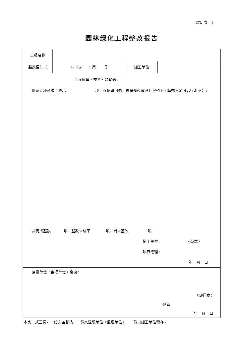 表格名称:园林绿化工程整改报告