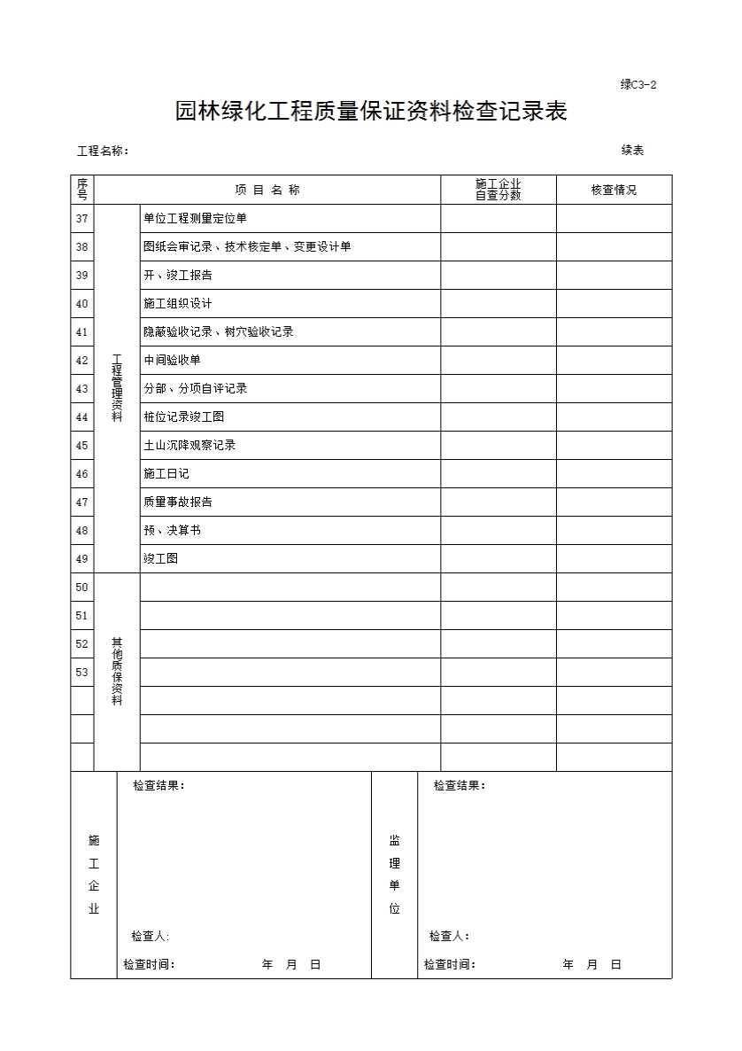 绿C3—2园林绿化工程质量保证资料检查记录表
