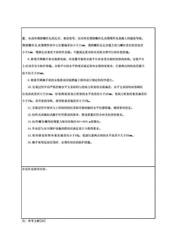 表格名称:附着升降脚手架安装搭设施工技术交底