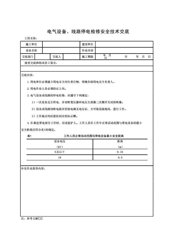 表格名称:电气设备、线路停电检修安全技术交底