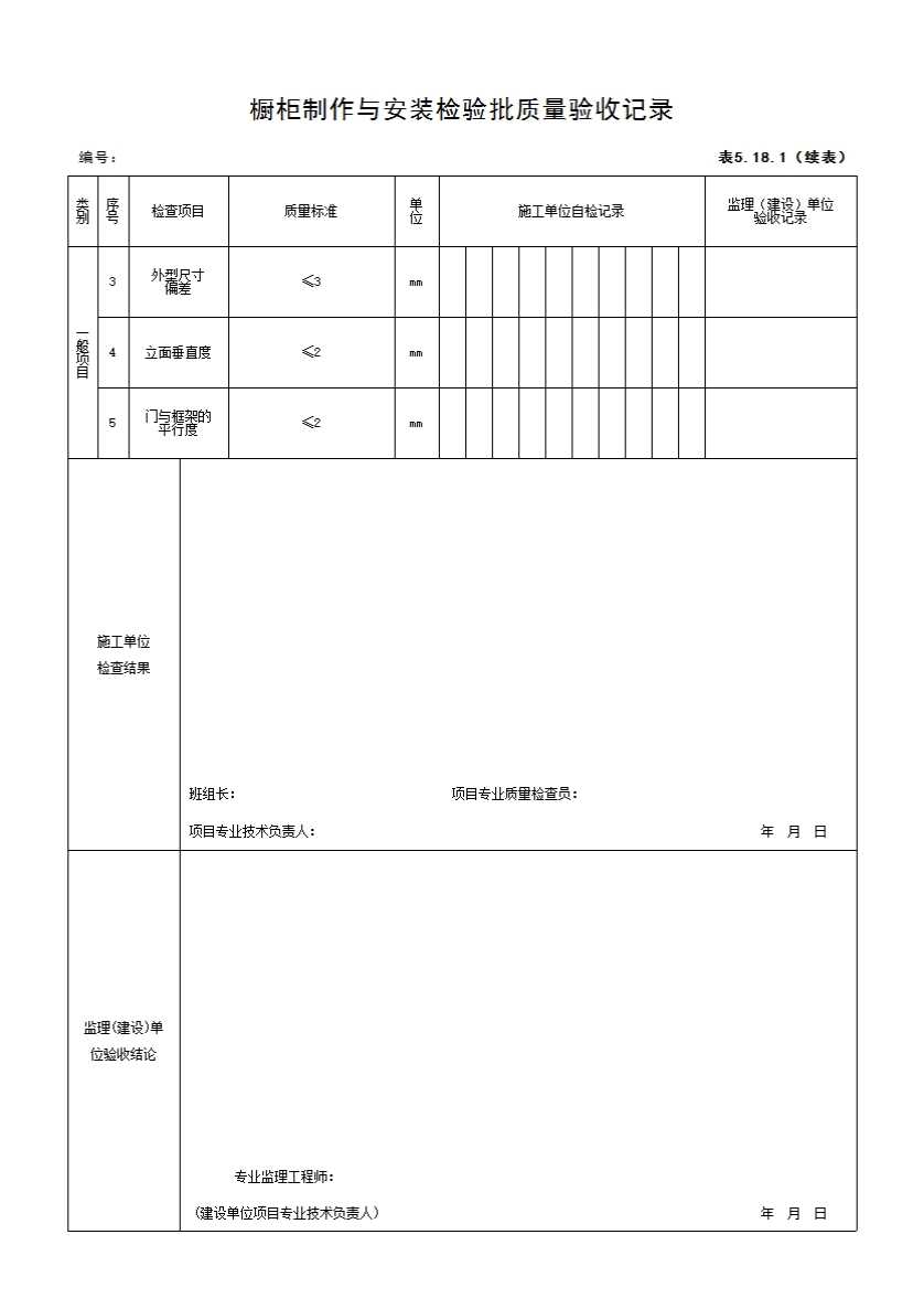 5.18.1 橱柜制作与安装检验批质量验收记录
