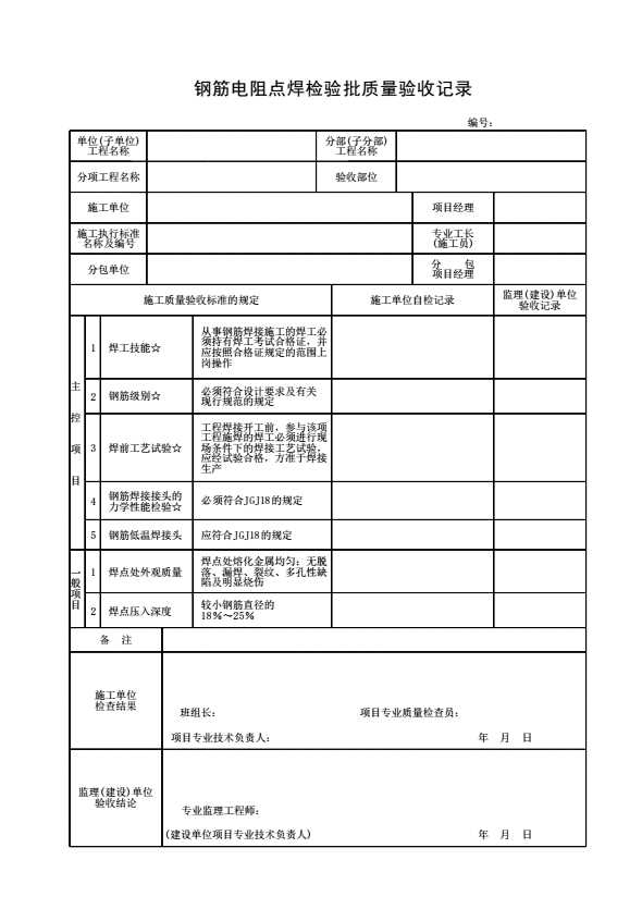 表格名称:C.5 钢筋电阻点焊检验批质量验收记录